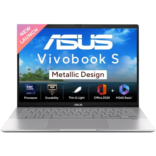 ASUS Vivobook S14, Intel Core Ultra 7 255H, 16GB RAM, 512GB SSD, FHD+ 14", Windows 11,Office Home 2024 M365 Basic (1Year)*, Cool Silver, 1.4Kg, S3407CA-LY084WS, Intel Arc iGPU, Metallic Design Laptop