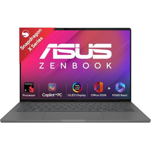 ASUS Zenbook A14 OLED (2025),Qualcomm Snapdragon X, Copilot+PC, 0.9kg Light-Weight, 14""(35.6 cm),32hrs Battery Life*(16GB/512GB/Windows 11/MSO 2024/M365 Basic-1yr/AI PC/Metal Body/UX3407QA-QD259WS)