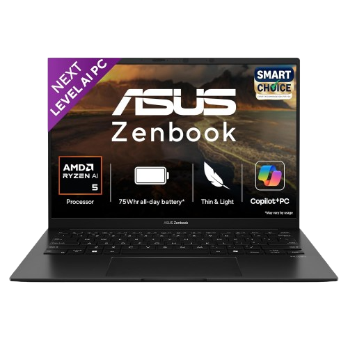 ASUS Zenbook 14, Smartchoice,AMD Ryzen AI 5 340, AI PC(AMD Radeon Graphics/16GB RAM/512GB SSD/3K OLED/14/120Hz/Windows 11/M365 Basic (1Year)*/Office Home 2024/Jade Black/1.2 Kg) UM3406KA-PP240WS