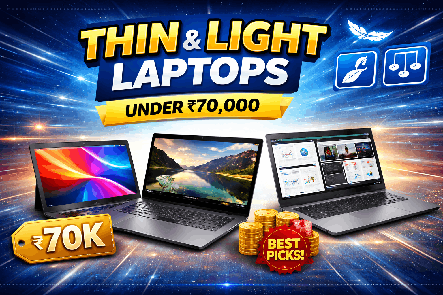 Thin & Light Laptop IN DELH Primebook 2 Neo (2026) | 6GB RAM, 128GB Storage (Expandable Upto 512GB) | MediaTek Helio G99 | Android 15 (PrimeOS 3.0) | 11.6" HD IPS Display | Windows Cloud PC & In-built AI | Thin & Light Laptop ₹15,990 M.R.P: ₹24,990 CHECK ON AMAZON ASUS Vivobook 16,Intel Core Ultra 5 (Series 2),Thin & Light(Intel iGPU/16GB RAM/512GB SSD/FHD+/16"/60Hz/Backlit Keyboard/Windows 11/M365 Basic (1Year)*/Office Home 2024/Blue/1.88 kg) X1607CA-MB139WS ₹65,990 M.R.P: ₹92,990 CHECK ON AMAZON Walker Best Student & Office Work Laptop|Thin & Light|15.6" 1920 * 1080 Resolution FHD IPS Display |8GB RAM,256 GB SSD|Intel Celeron Processor N4020 | Windows 11 Home |Silver ₹16,190 M.R.P: ₹39,990 CHECK ON AMAZON Walker Best Student &Office Work Laptop|Thin & Light|14.1" 1920 * 1080 Resolution FHD IPS Display |4GB RAM,128GB SSD|Celeron Processor N4020 (Gemini Lake)| Windows 11 Home | Silver ₹12,190 M.R.P: ₹30,000 CHECK ON AMAZON Lenovo IdeaPad Slim 3 Ryzen 3 7320U 15.6 inch (39.6cm) FHD Laptop (8GB/512GB SSD/Windows 11/Office 2021/Alexa Built-in/3 Month Game Pass/Arctic Grey/1.62Kg), 82XQ008DIN ₹29,990 M.R.P: ₹53,190 CHECK ON AMAZON