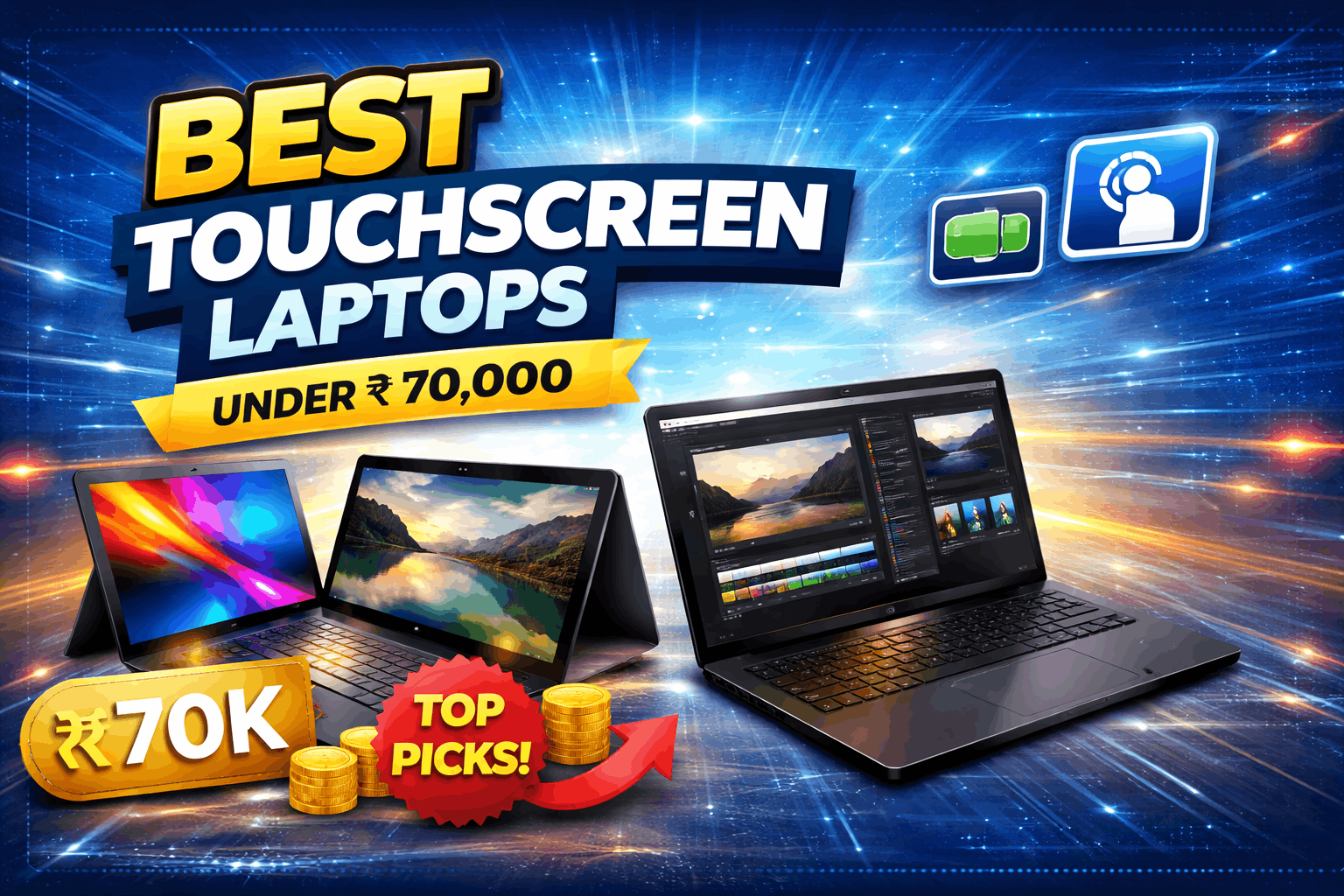 Touchscreen Laptop IN DELHI ASUS Vivobook 15, Intel Core i3 13th Gen 1315U, 16GB RAM, 512GB SSD, FHD 15.6", Touchscreen, Win11, Office Home 2024, M365 Basic (1Year)*, Quiet Blue, 1.7Kg, X1504VA-E83959WS, Intel UHD iGPU, Laptop ₹39,990 M.R.P: ₹51,990 CHECK ON AMAZON Certified 1040G7 x360, Core i7-10510U 10th Gen Laptop (16GB RAM, 512GB NVMe SSD), Touchscreen, IPS, 14" (35.6 cm) FHD, Win 11, Silver, Ultra-Slim Convertible, Fingerprint Reader, HD Camera ₹49,990 M.R.P: ₹2 ,29,000 CHECK ON AMAZON Lenovo Smartchoice Ideapad 5 2-in-1 13th Gen Intel Core i5-13420H (16GB RAM/512GB SSD/Windows 11/Office Home 2024/WUXGA IPS/14 (35.5cm)/Touchscreen 2-in-1/3Mon.Game Pass/Grey/1.6kg), 83KX0059IN Laptop ₹67,990 M.R.P: ₹96,490 CHECK ON AMAZON HP Pavilion x360, 13th Gen Intel Core i5-1335U (16GB DDR4, 512GB SSD) Touchscreen, 14"/35.6cm, FHD, Win 11, Office 21, Silver, 1.51kg, ek1074tu/1148tu, Iris Xe, FPR, 5MP Camera, Backlit KB Laptop ₹62,990 M.R.P: ₹90,485.33 CHECK ON AMAZON HP Chromebook X360 Intel Celeron N4120 14 inch(35.6 cm) Micro-Edge, Touchscreen, 2-in-1 Laptop (4GB RAM/64GB eMMC/Chrome OS/Intel UHD Graphics,1.49Kg), 14a-ca0506TU ₹23,588 M.R.P: ₹32,295 CHECK ON AMAZON
